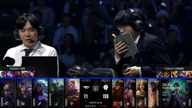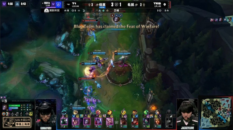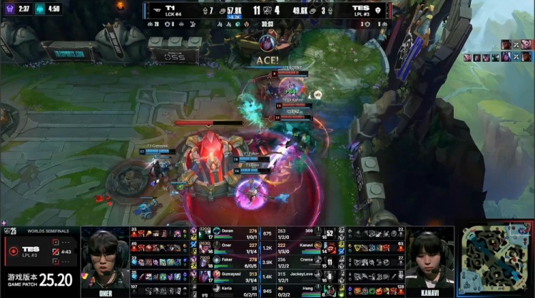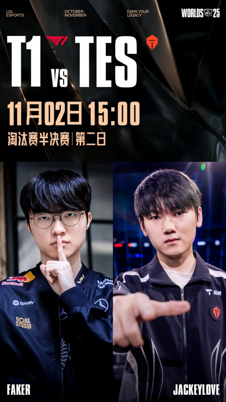 直播吧11月2日讯 2025全球总决赛半决赛,由TES对阵T1!