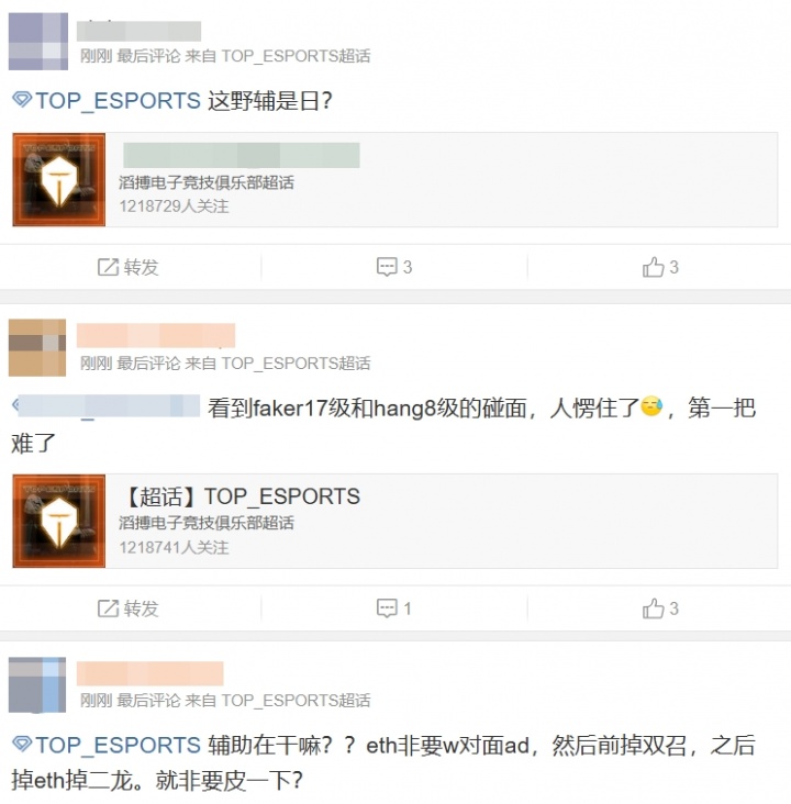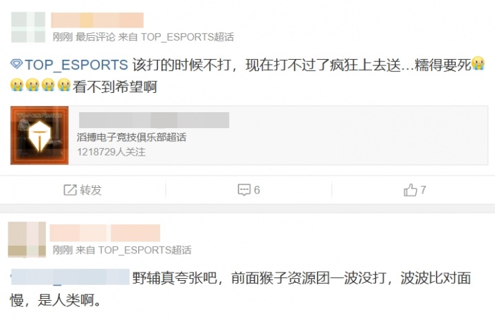 直播吧11月2日讯 在今日的S15全球总决赛半决赛上,TES首局团战大溃败无缘胜利,赛后粉丝就选手表现在超话中热议!