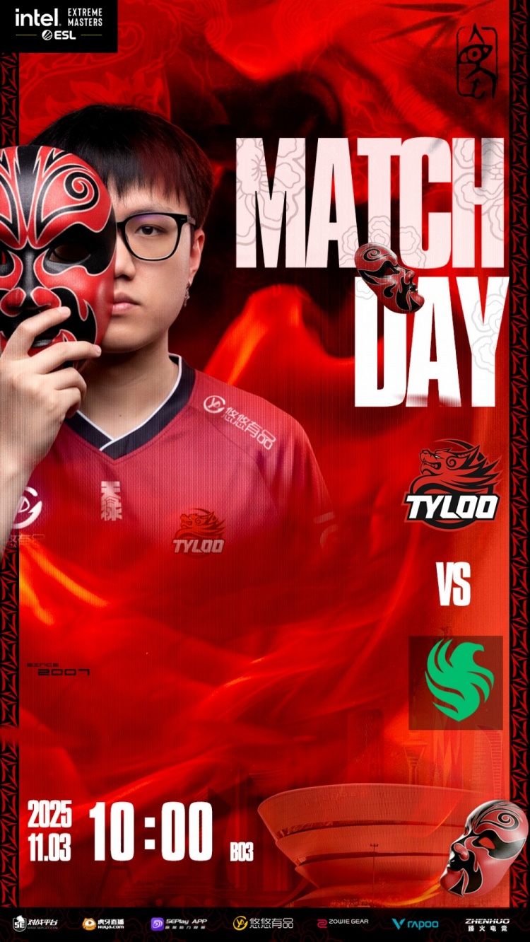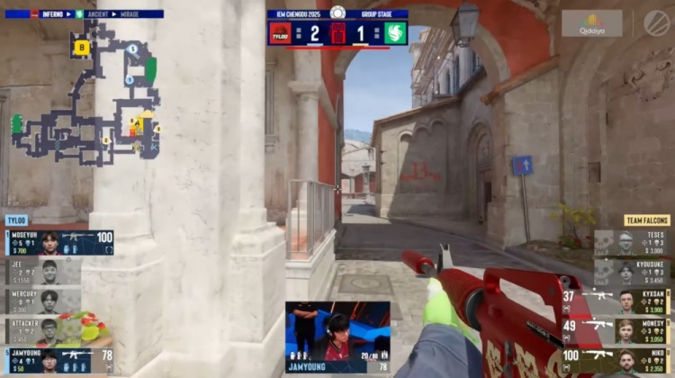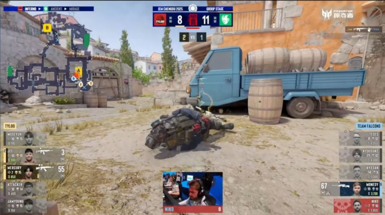 直播吧11月3日讯 CS2大赛2025IEM成都站终于开战,今日A组首场小组赛由TYLOO对阵Falcons!