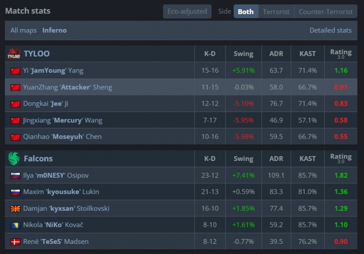 Falcons:NiKo、m0NESY、TeSeS、kyousuke、kyxsan