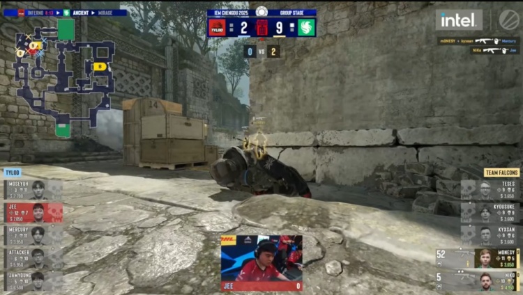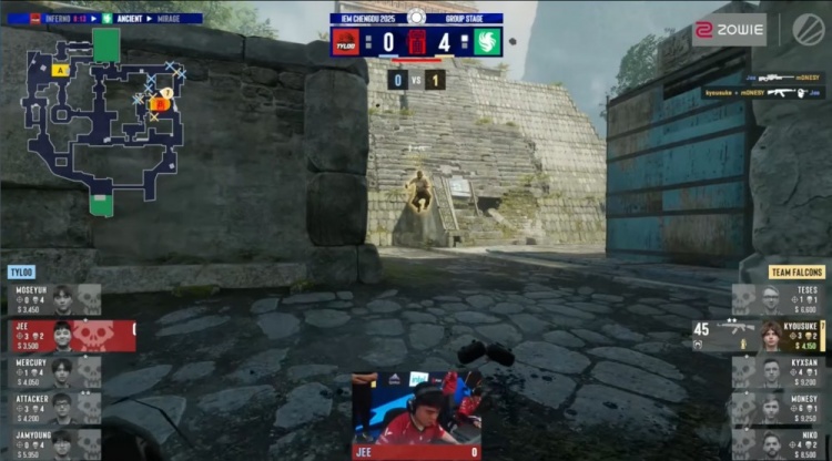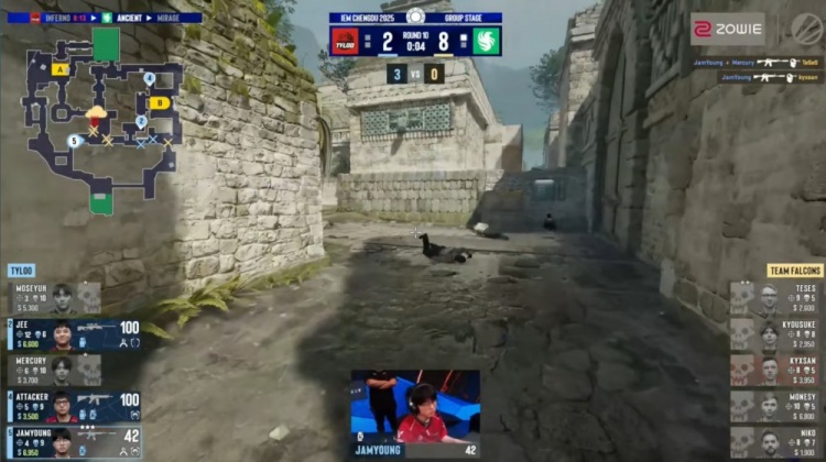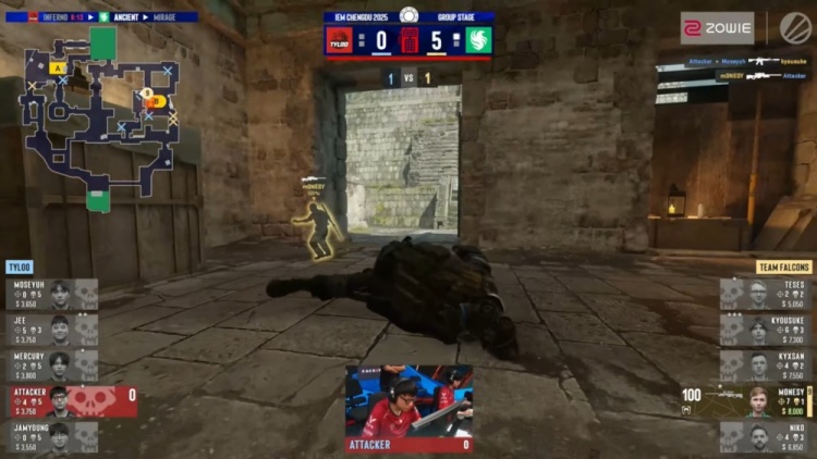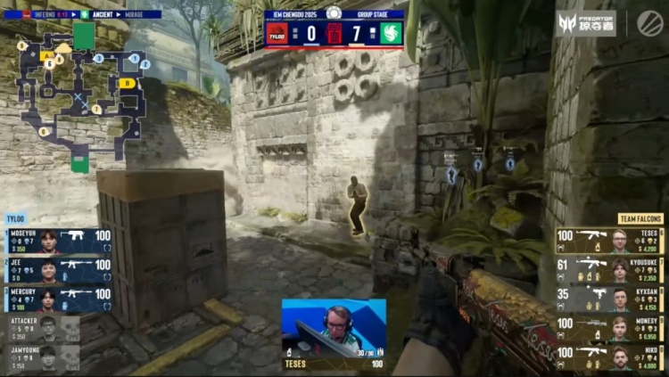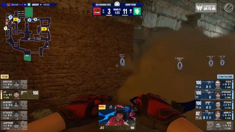 直播吧11月3日讯 CS2大赛2025IEM成都站终于开战,最终中国战队TYLOO在A组首场比赛遭Falcons两图横扫,掉入败者组,将在生死局对阵Spirit/paiN之间的败者。