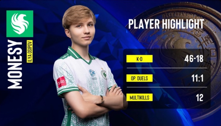 第16局来到长枪回合,猎鹰放空A点回防,Monesy大狙轰掉白菜开路再杀Mercury与Jee拿到三杀,Moseyuh双杀无力回天,天禄3-13猎鹰。