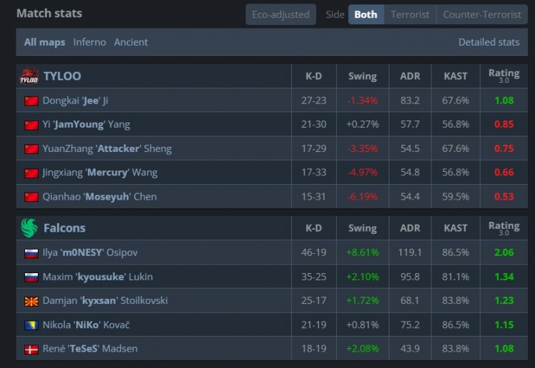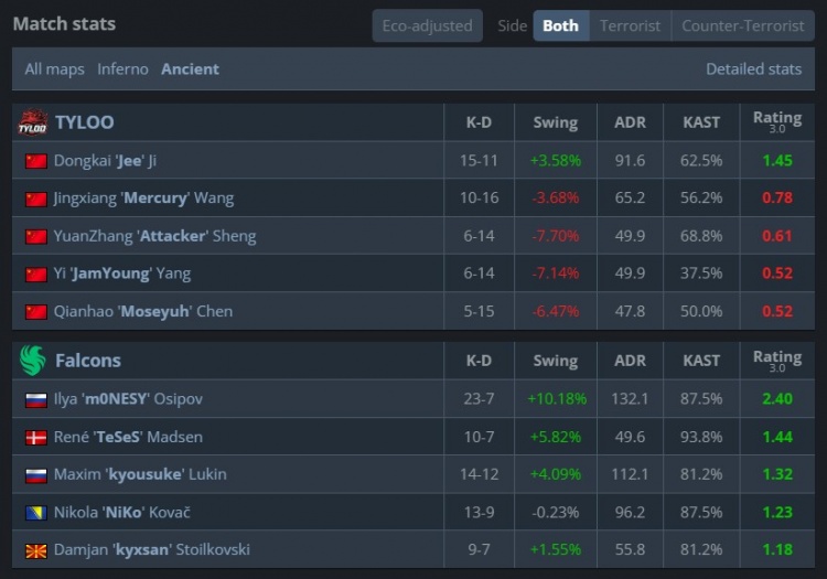 Falcons:NiKo、m0NESY、TeSeS、kyousuke、kyxsan