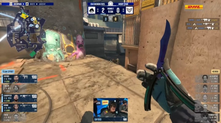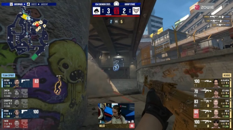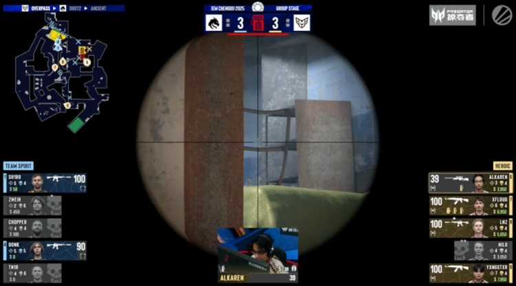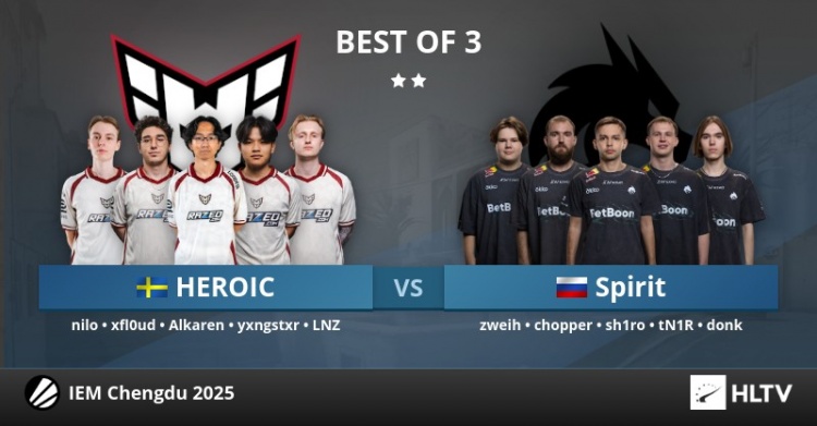 直播吧11月5日讯 CS2大赛2025成都IEM站继续进行,今日Spirit在A组败者组生死战将对阵HEROIC!