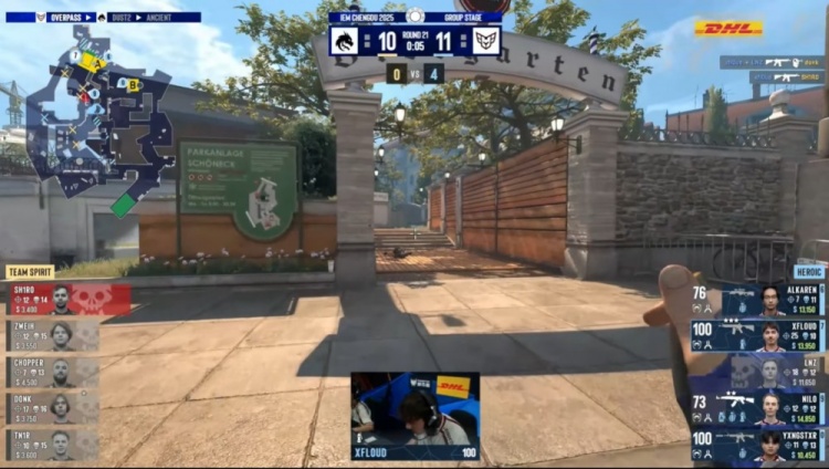 图一X队选图死亡游乐园先攻,Spirit连下三分后,第二个长枪局X队带包转B拿到首分,紧接着yxngstxr爆轰四杀打炸Spirit经济,xfloud第8回合轰出五杀,X队连拿5分反超比分。Spirit暂停回来由donk前顶厕所拿到首杀,Spirit连拿3分,在大CT图以7-5结束上半场。