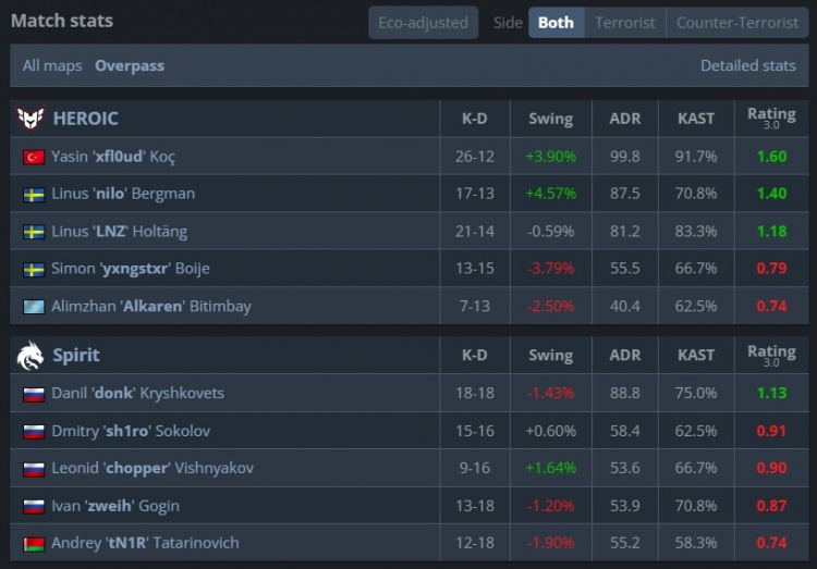 易边再战,Spirit与上半场如出一辙先拿3分,但Alkaren连续两回合银行沙鹰一发爆头donk。回到长枪回合LNZ发力下水道双杀吹响反击号角,nilo拉出A大第17回合爆轰四杀,X队一路将比分扳为10-10平,关键第22回合nilo再轰四杀帮助X队拿到赛点,最终donk一打二无力回天,X队13-11图一赢下Spirit。