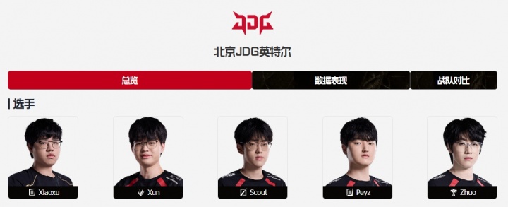 目前LPL官网显示的JDG阵容为Xiaoxu、Xun、Scout、Peyz、Zhuo,JDG在今年最好成绩为年终季后赛第四;之后JDG在冒泡赛出线战不敌iG无缘S15。