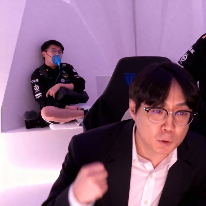 >顶不住了!导播镜头给到后台T1教练组:有人已经在吸氧了!