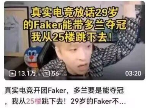 而此前直播放话Faker能带Doran夺冠的跳楼的真实电竞,评论区直接沦陷:
