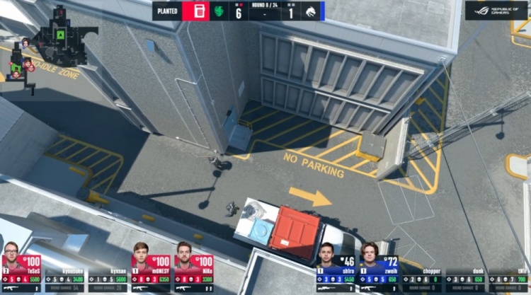 第6局龙哥摸穿铁板,京介K1下楼击杀chopper,B门口tN1R架近点被Niko打掉,K3在B下包,绿龙三人保枪,猎鹰5-1绿龙。