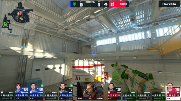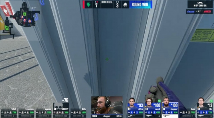 易边再战,手枪局donk开场先杀Niko,但Monesy双枪黄房之上双杀donk与sh1ro,chopper残局1v4格洛克瞬间双杀,随后chopper拿到C4想去B下包被Monesy一枪秒掉,猎鹰8-5绿龙。