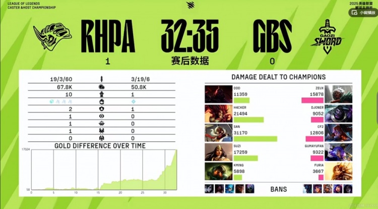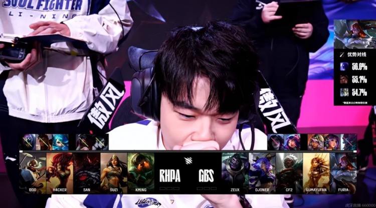 GBS:上单LangX、打野 硕硕、中单CF2、下路 雨凡、辅助 阿芙