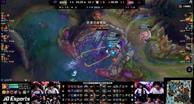 【28分钟】RHPA找到机会,上野双闪+双大招配合队友输出秒掉了LangX安蓓萨,回头San库奇交闪向前配合队友的爆发输出再拿双杀!RHPA打出0换3之后回头拿下大龙+风龙魂!GBS还想看结果野辅两人都被留住!这两波打完RHPA再拆中二塔,一万经济差了!