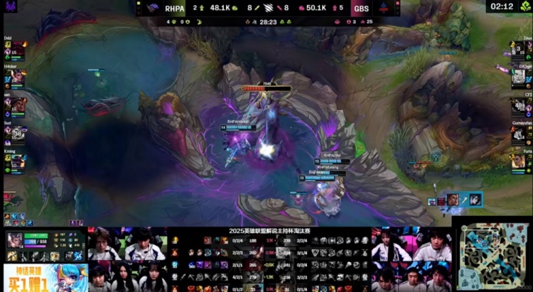本局比赛前期硕硕佛耶戈对位刷野压制住了H4cker赵信,阿芙芮尔一波完美开团接上了雨凡女枪大招拉满输出!前期GBS顺风顺水一度拿下5K经济优势!但是中期RHPA打团一波抓住对手开大龙的机会击杀对手四人,还拿下大龙反超经济!这波Suki斯莫德三杀实现装备成型!双方一路拉扯到了龙魂团,关键时候队长LangX奎桑提站了出来,两次进场配合队友强行切死了Suki斯莫德!这波最终雨凡女枪四杀收尾,GBS团灭RHPA,从中路一波结束比赛,先拿赛点!