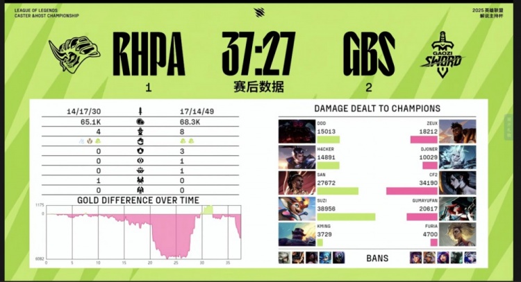第一局:🎮太稳了啊!GBS全队毫无亮点 San中单库奇收割超神 RHPA赢首局