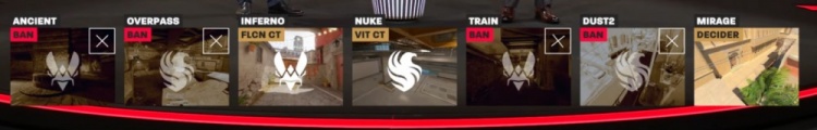 第5局开场铁板龙哥换掉Zywoo,Monesy大狙轰掉apex,火仔外场油桶看K1击杀Niko与京介,Monesy大狙补掉火仔,ropz残局1v2,K3与Monesy两人下B下包,管火给上,ropz进B击杀MOnesy被K3补掉,猎鹰5-0小蜜蜂。
