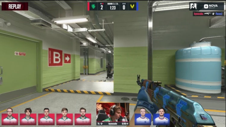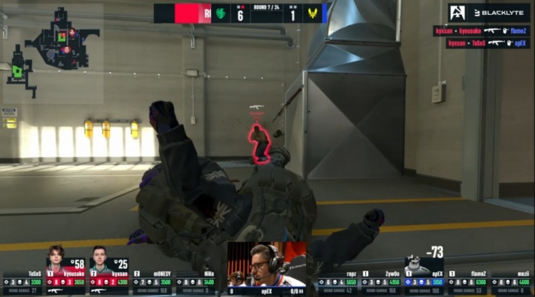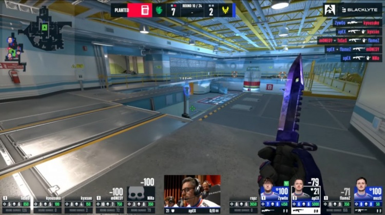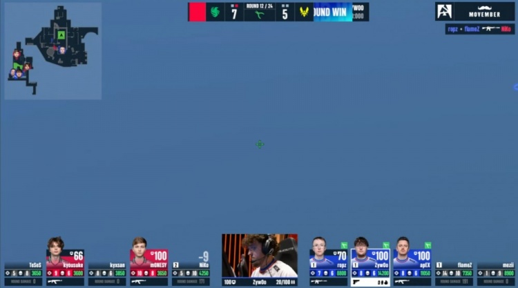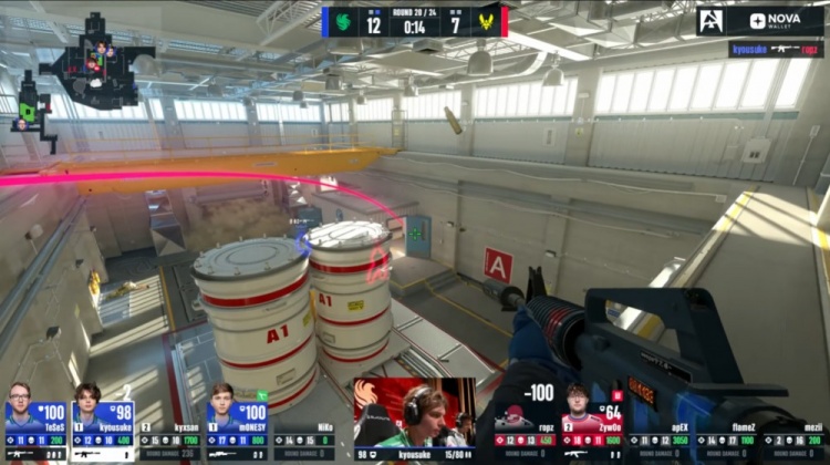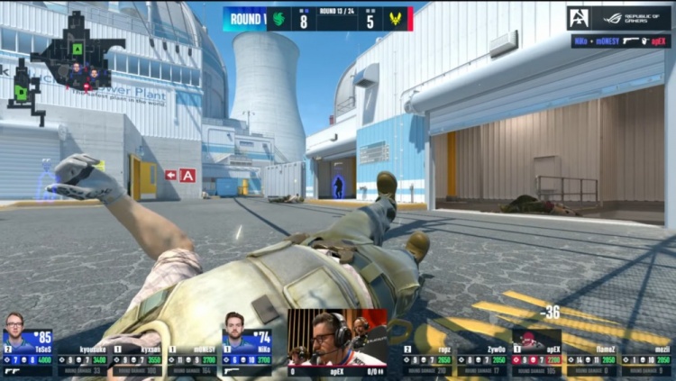 第15局来到长枪回合,apex包点双杀K3与京介,Niko换掉mezii,Zywoo在A下包,猎鹰9-6小蜜蜂。