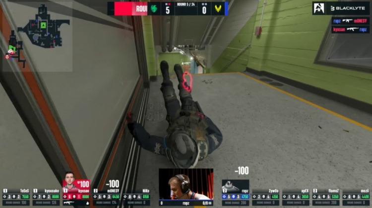 上半场猎鹰先攻,手枪局猎鹰直接冲A,Monesy先换ropz,火仔击杀Monesy,京介包点架枪三杀,猎鹰1-0小蜜蜂。