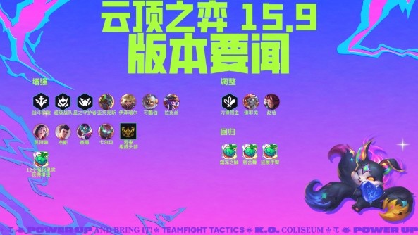 直播吧11月19日讯 英雄联盟国服将于今晚更新云顶之弈15.9版本,具体内容如下: