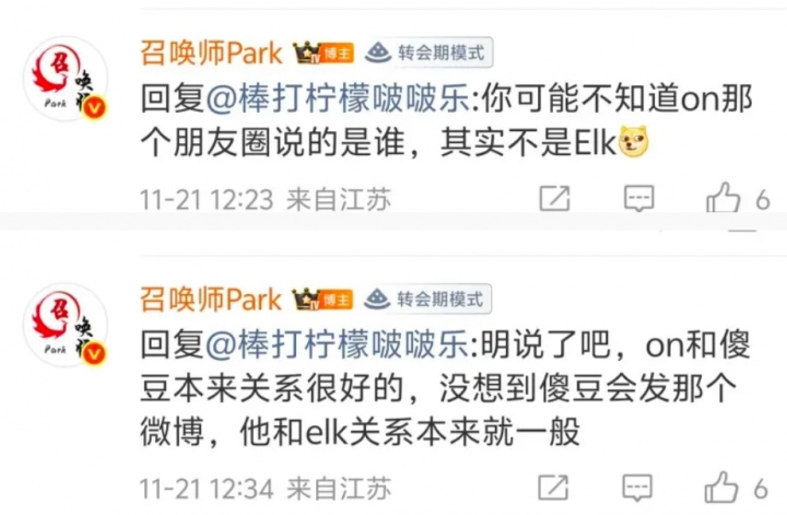 爆料人召唤师park表示:ON的朋友圈其实说的不是ELK,两人本来关系就一般,说的是Shad0w!