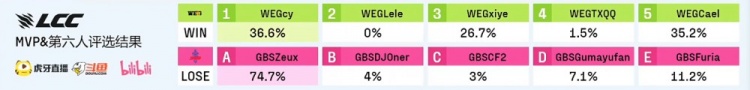 蓝色方WE金(WEG):宸宇莫德凯撒、Lele莉莉娅、xiye(C)永恩、瞳夕飞机、Cryin波比