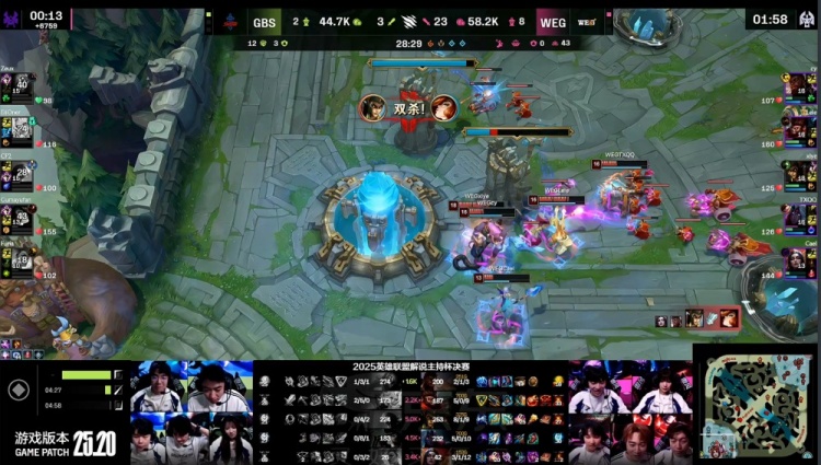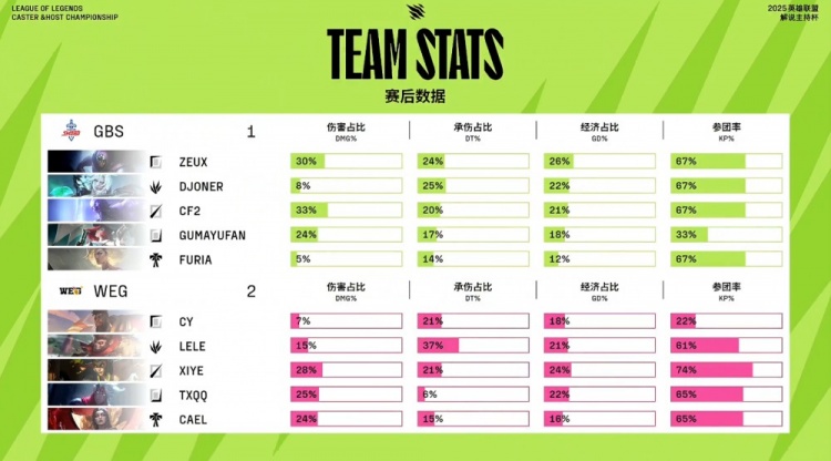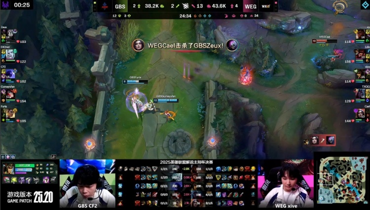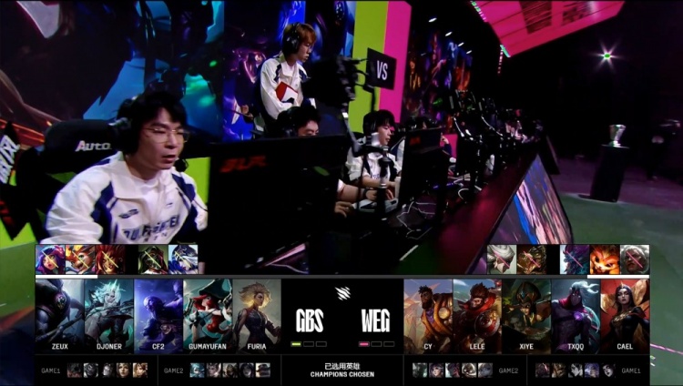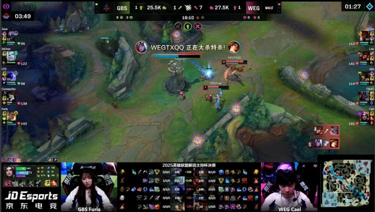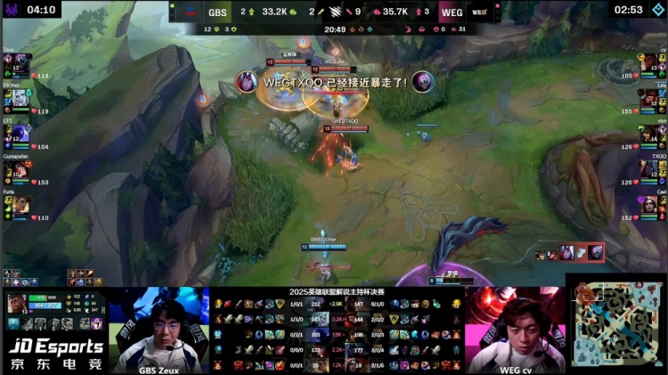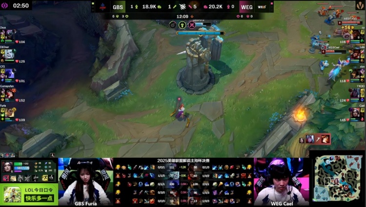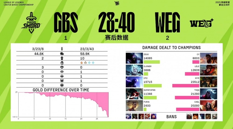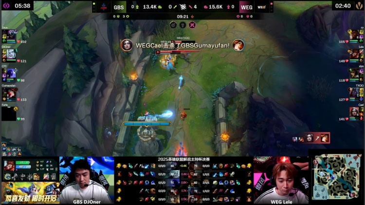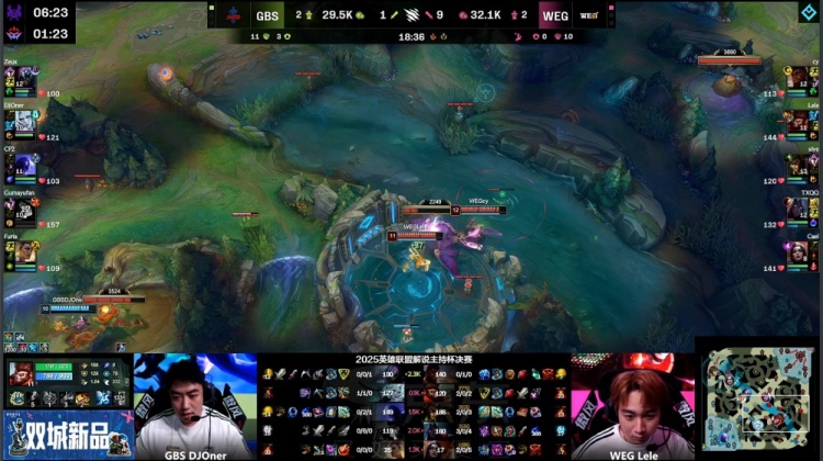 直播吧11月22日讯 2025英雄联盟解说主持杯决赛,由LangX率领的搞子剑(GBS)对阵xiye带领的WE金(WEG)!