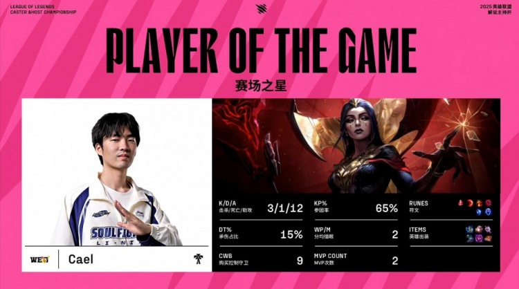 后期WEG拿到电龙魂后再拿大龙,最终WEG携巨大经济差推进,高地下xiye蛇女连斩四人,WEG顺势推平GBS基地,成功拿到赛点。