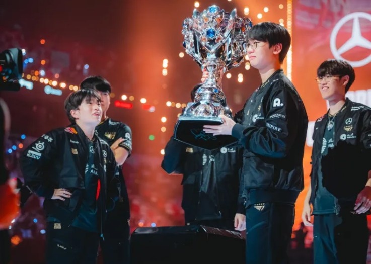 直播吧11月23日讯 2025英雄联盟全球总决赛T1夺冠后,Doran、Oner、Faker选手在T1官方频道进行TalkShow;