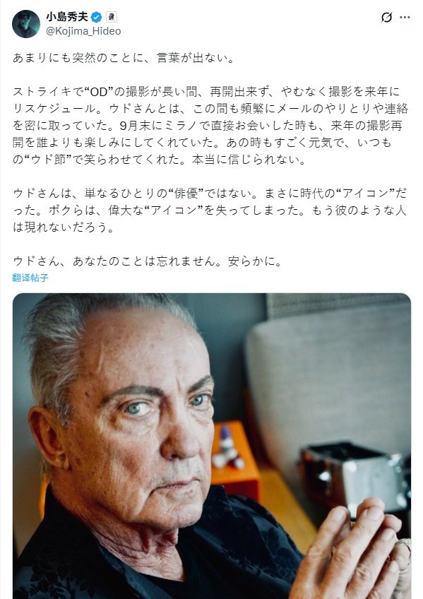 乌多先生不只是一位“演员”,他是一个时代的“象征”。我们失去了一位伟大的“标志性人物”。像他这样的人,恐怕再也不会出现了。
