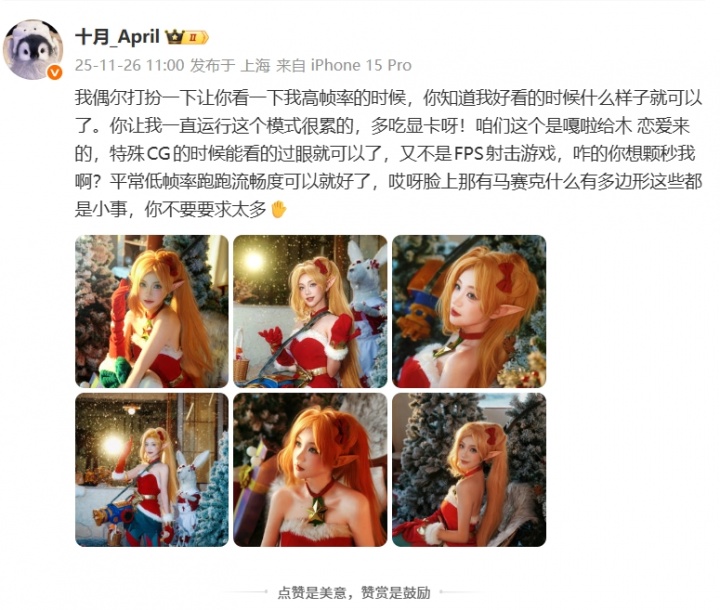>Cos小麋鹿😍女大学生十月晒照:咱们这个是嘎啦给木 恋爱来的!