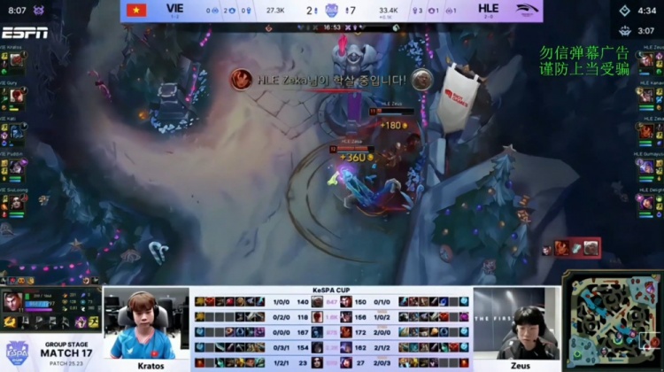 直播吧12月7日讯 2025年Kespa杯小组赛继续进行,由越南队对阵HLE!