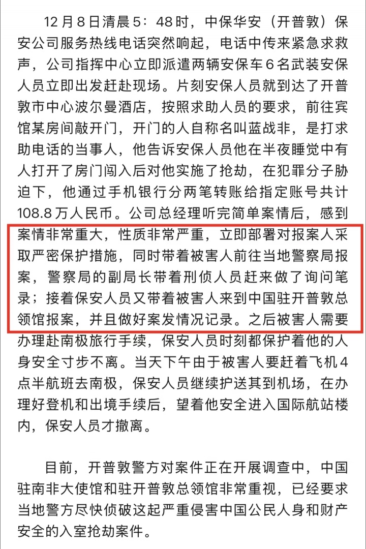 据南非开普敦当地安保公司消息,他们公布“蓝战非遭绑架”一事的部分过程👇