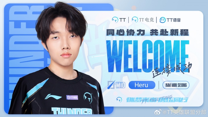 经双方友好协商,我们很高兴地宣布:即日起,选手金敏省(ID: Heru)正式加入TT英雄联盟分部,担任中单位置。