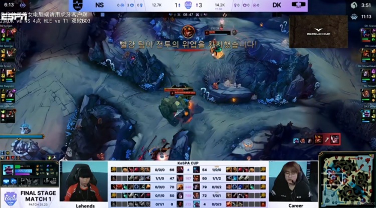 直播吧12月11日讯 2025年LCK的Kespa杯来到淘汰赛阶段,四强双败第一场是NS对阵DK!