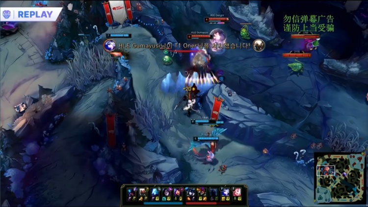 【17:51】 HLE四人来下推进,Oner潘森被宙斯小猪开大控住,HLE控制链拉满,Oner难逃一死,HLE推掉T1下路二塔,经济领先4k。