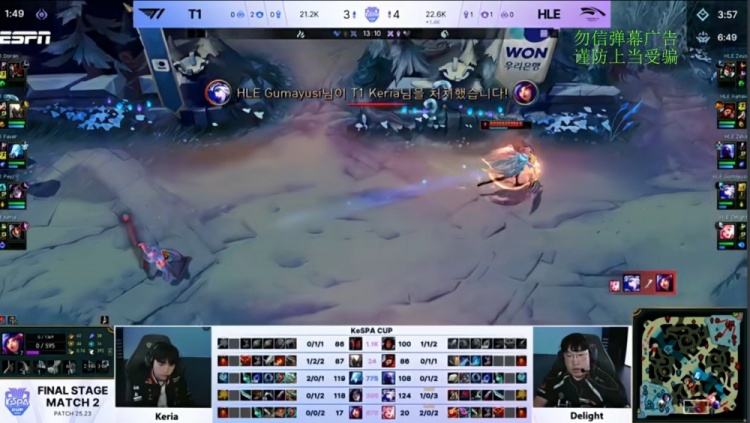 第一局:🎮杀红眼了!delight芮尔一开三 小吕布战舰爆杀T1 HLE赢首局