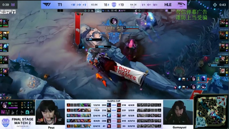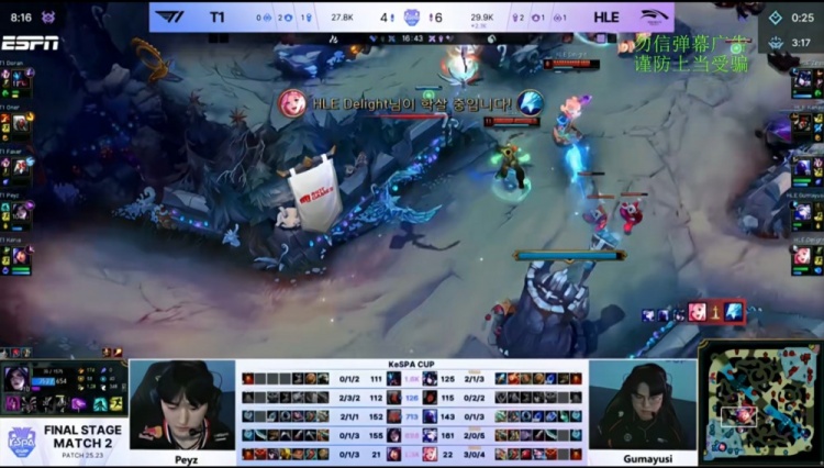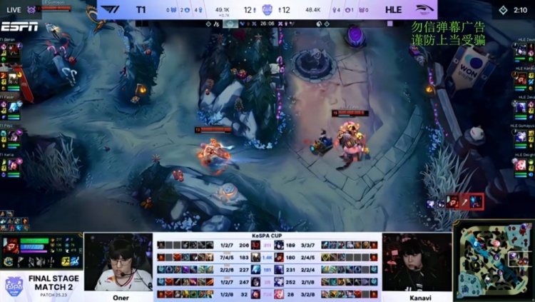 直播吧12月11日讯 2025年Kespa杯来到淘汰赛阶段,今日焦点之战由T1对阵HLE!
