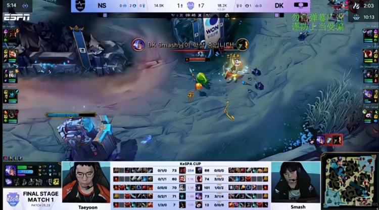 直播吧12月11日讯 2025年LCK的Kespa杯来到淘汰赛阶段,四强双败第一场是NS对阵DK!