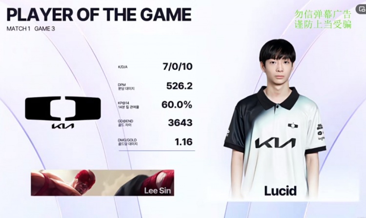 【14:10】Lucid盲僧野区QR命中,配合ShowMaker阿狸前后包夹,这波DK越塔开杀,再次打出0换3!不过随后Kingen船长上路越塔单杀掉了Siwoo贾克斯!