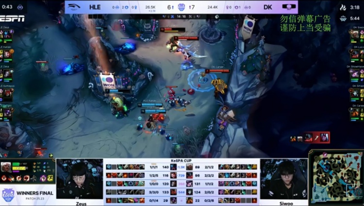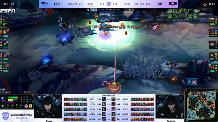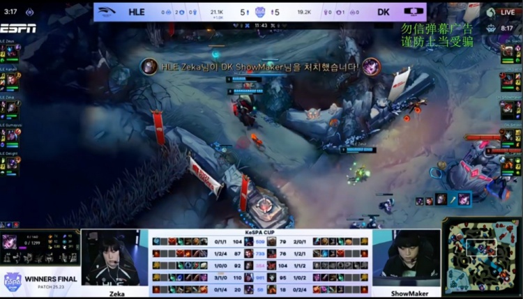 直播吧12月12日讯 2025年Kespa杯胜者组决赛,由DK对阵HLE!