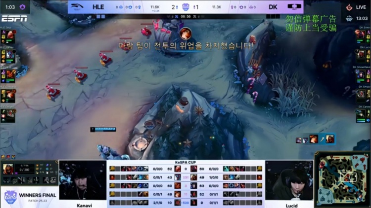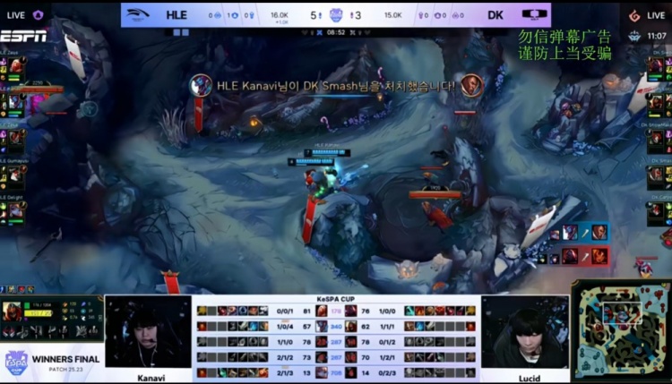 直播吧12月12日讯 2025年Kespa杯胜者组决赛,由DK对阵HLE!