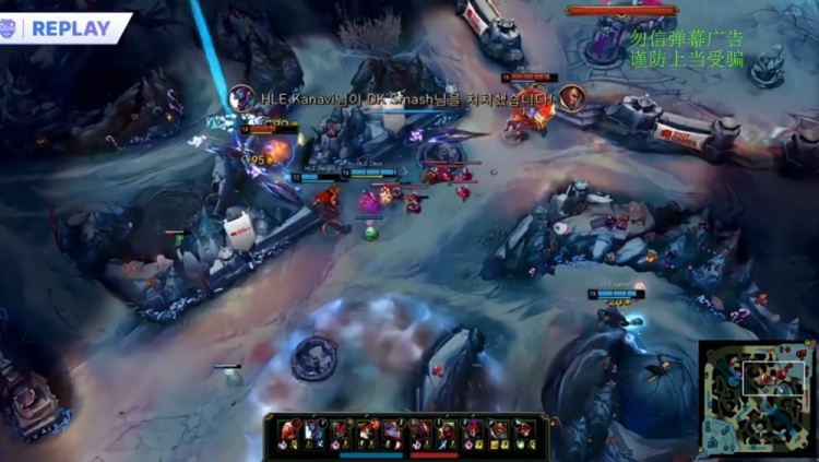 【8:41】巢虫团混战,Smash卢锡安被追击致死,HLE打出2换3,Lucid劫在野区被看到只能交W逃生,Kanavi巨魔越上路一塔强杀Lucid劫得手。