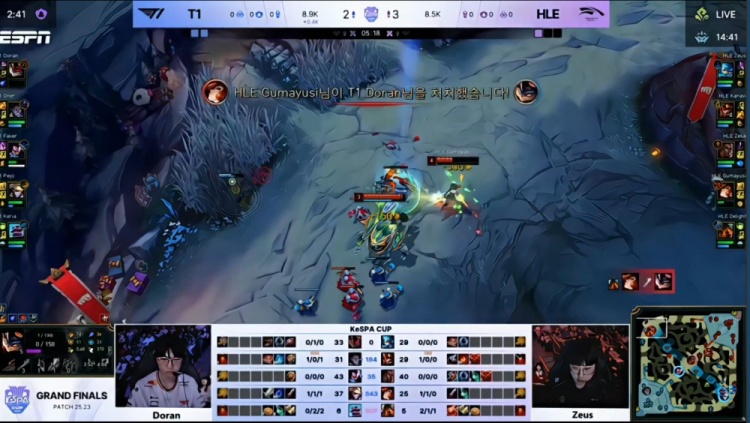 直播吧12月14日讯 2025年KeSPA杯决赛,由HLE对阵T1!