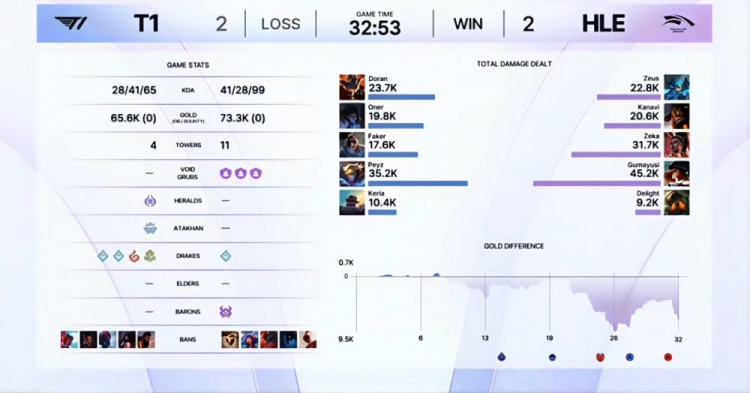 HLE:Zeus、Kanavi、Zeka、Gumayusi、Delight