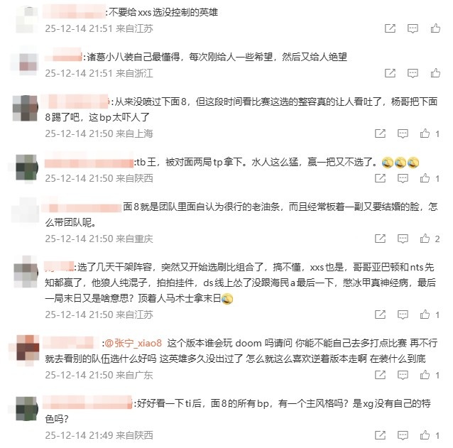 直播吧12月14日讯 DOTA2梦幻联赛S27瑞士轮的3-1组,XG面对VP的决胜局被16分钟打到GG,官博评论区狂喷教练xiao8;
