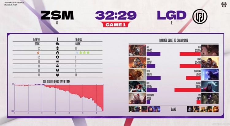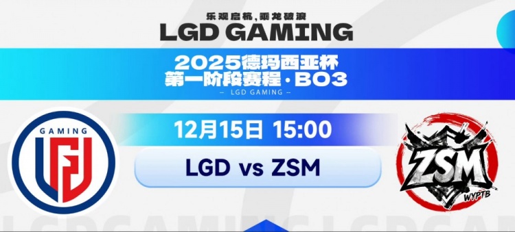 直播吧12月15日讯 2025年德玛西亚杯第一阶段今天开打!今日首场比赛是Ning带队的ZSM对阵LGD!