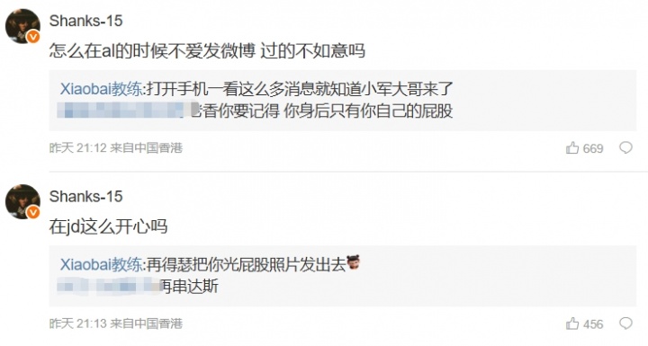 直播吧12月15日讯 前al教练,现jd教练小白发文记录生活,Shanks评论区出没,整活三连问:“怎么在al的时候不爱发微博?过的不如意吗?在jd这么开心吗?”