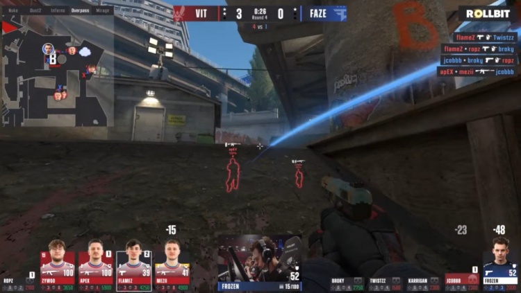 第5局回到长枪回合,火仔进长管爆轰双杀,寒王下水道带走Zywoo,apex进B下包,VIT5-0FAZE。