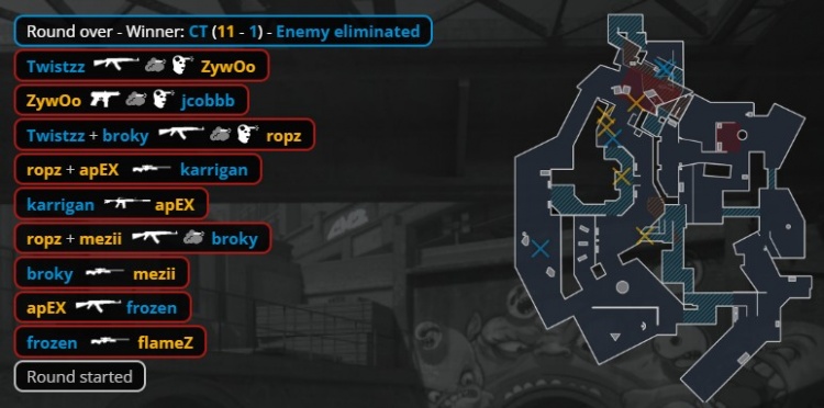 FaZe:karrigan、jcobbb、frozen、broky、Twistzz