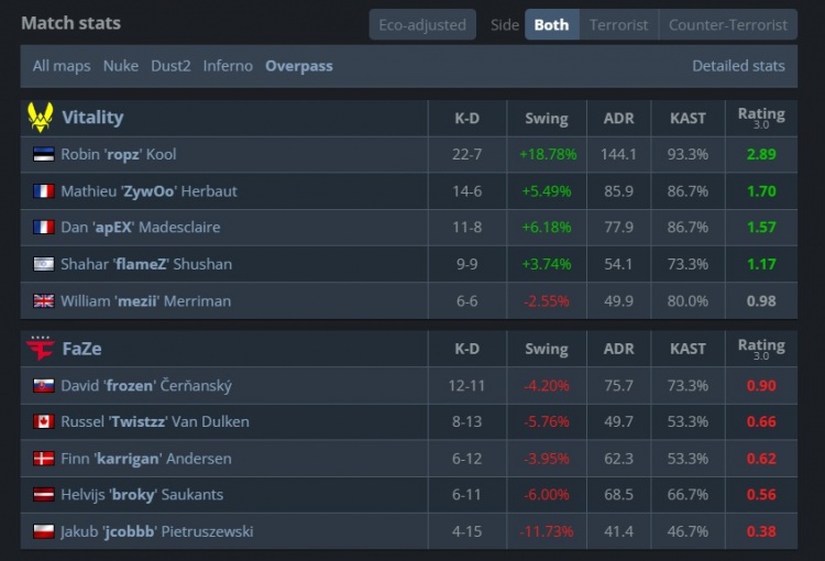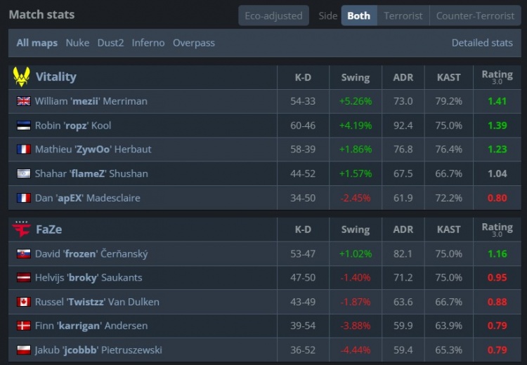 Vitality:mezii、apEX、ropz、flameZ、ZywOo